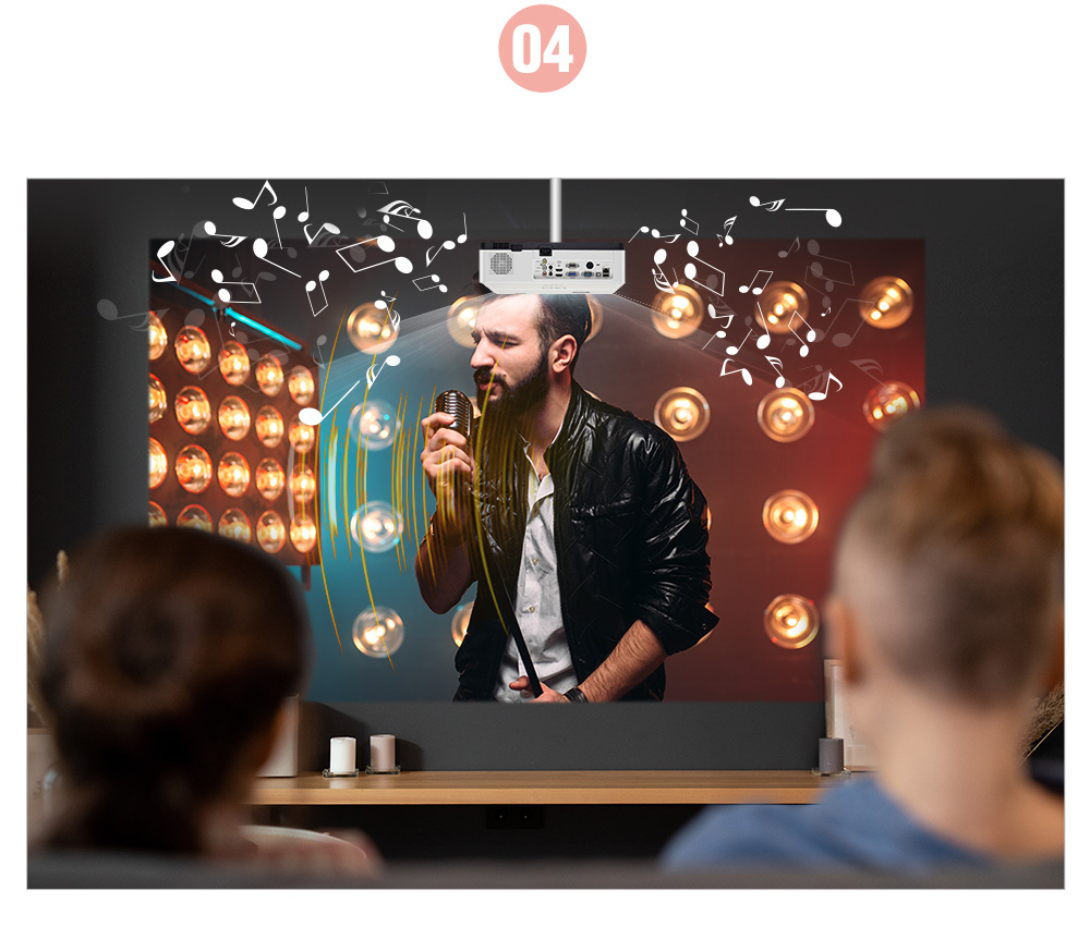 프로젝터 내에 16W스피커가 탑재되어 있어 스피커나 음향 솔루션이 없는 교실, 회의실 같은 넓은 공간에서도 프로젝터만으로 충분히 소리를 크게 전달할 수 있습니다. 또한 별도의 스피커를 구입하지 않아도 라이브한 영상과 명확한 음성을 함께 감상 할 수 있어 경제적입니다.