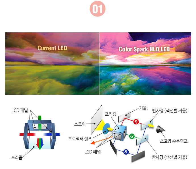 Color Spark HLD LED 시스템은 선명한 화질과 색상의 이미지를 제공합니다. 이 시스템은 현 시장의 LED 빛의 4배를 방출해 화면을 3배 더 밝게 만드는 기술을 사용하여 뛰어난 컬러 성능을 자랑합니다.