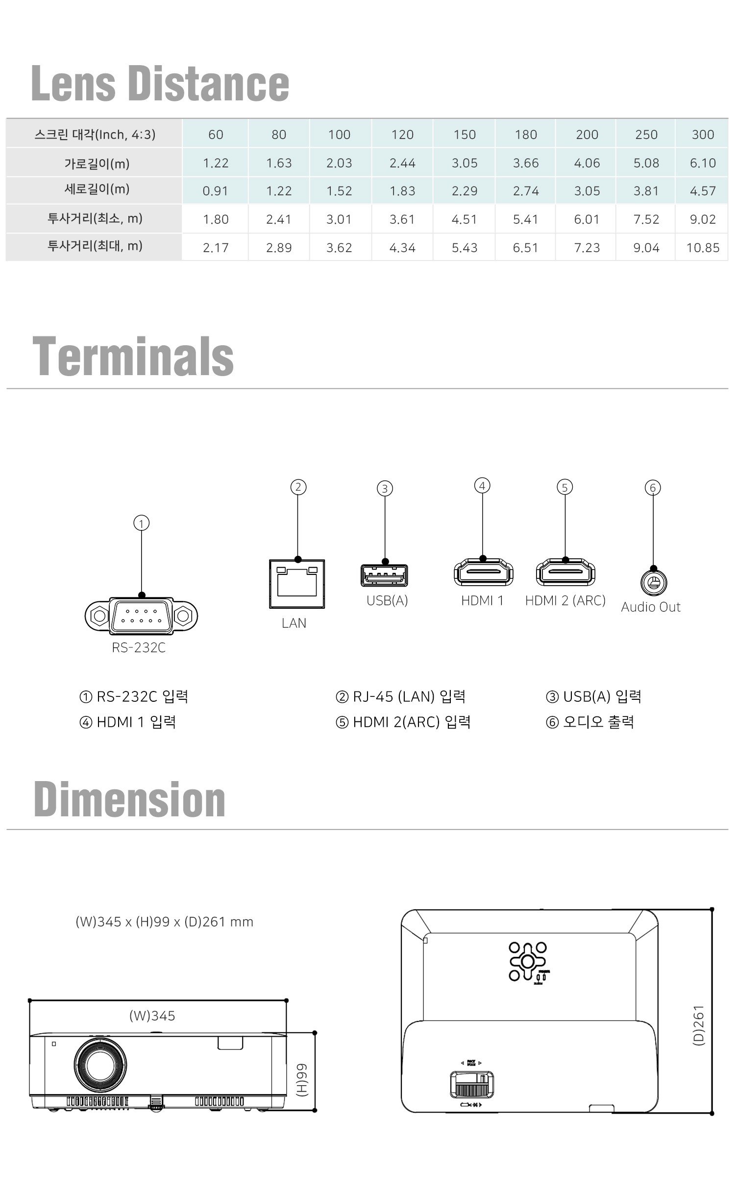 | 화면사이즈 | 30 ~ 300" | 램프 타입 | 240W |